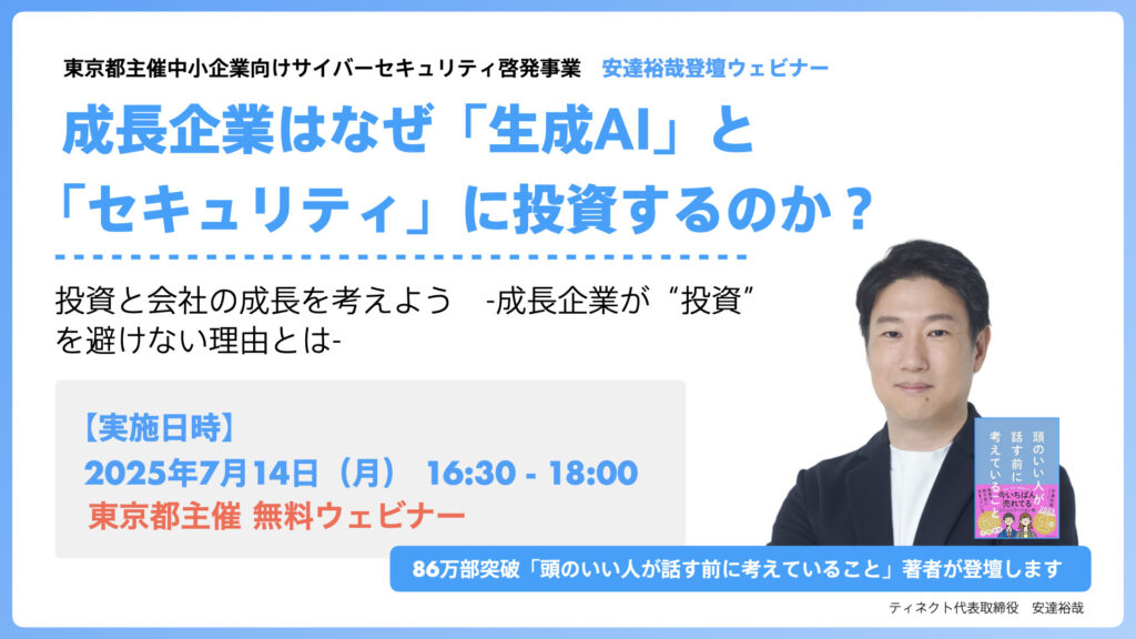 ティネクト代表の安達裕哉が東京都中小企業サイバーセキュリティ啓発事業のイベントに登壇します。