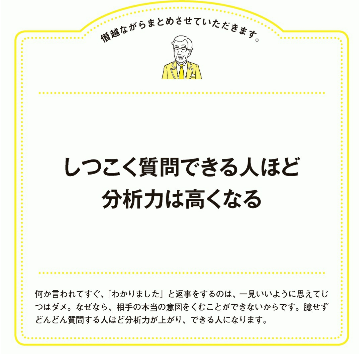 面白いな、と思ったのは、執事ほどの「察する」が職業の根幹になっている人たちであっても、「しつこく質問せよ」と言っている部分だった。