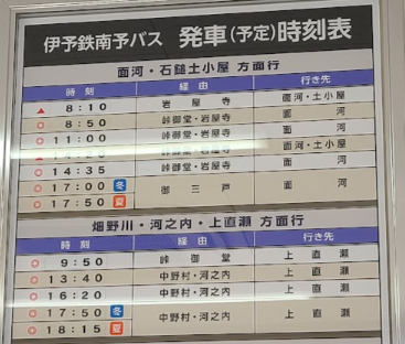 今日、路線バスの本数と路線数が充実しているのは東京や大阪といった大都市圏に限られ、地方の路線バスの時刻表はしばしば以下の写真のような有様となっている。